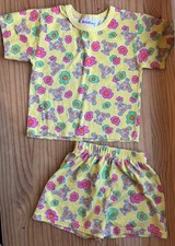 VTG Girls PJs 2 Piece Set Shorts Top Yellow Teddy Bears Flowers Size 3T