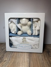 Vtg New Ralph Lauren Layette White Coverall Hat Socks Teddy Bear Plush 9 Months