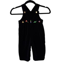 Vintage Florence Eiseman Baby Overalls 24M Black Velvet Toy Embroidered Romper