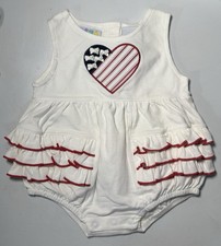 90s Miniwear Toys R Us Girls Baby Bubble Romper Patriotic Ruffle Heart 3–6M Y2K