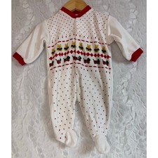 Vintage 80s Velvet Velour Christmas Bears Toys One-Piece Sleeper Romper Baby 6M