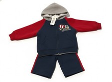 Baby Gap Vintage Rocking Horse Blocks Toys 2pc Red Fleece Overalls Set 0-3-6 Mo