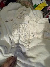Vintage Baby Lot Clothing Blankets Rattle Wood Toy upcycle Dolls Bears resell