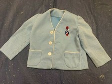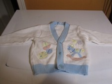 Vintage Baby Crest Blue Boys Cardigan Sweater w Nursery Theme Accents 18 Months