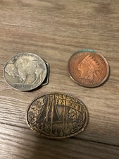 Belt Buckles by Indiana Metal Craft Lot of 3, 2 Coin Penny, Nickel San Francisco