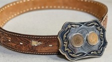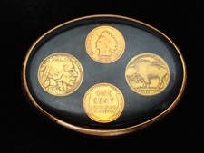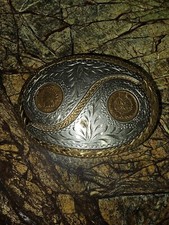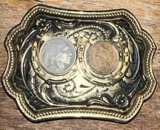 QE03169 VINTAGE 1980s *BUFFALO NICKEL & INDIAN HEAD PENNY* VON WEST COIN BUCKLE