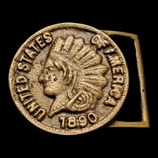 Vintage 1890 Indian Head Penny Replica Brass Buckle