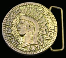 1877 Indian Head Cent Belt Buckle Novelty US Penny Coin Vtg 70s 80s .TYC509