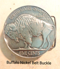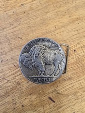 Buffalo 5 Cent Coin Belt Buckle 3" circular Silver Color Indian Metal Craft
