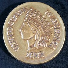 United States Of America 1877 Indian Head Penny Golden Belt Buckle 1.75" Dia USA