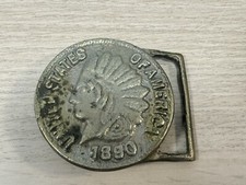 Vintage 1877 Indian Head Penny Belt Buckle Cent Coin Collector USA No Belt