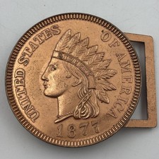 Unbranded Indian Head Copper Penny 1877 Belt Buckle United States of America 3"