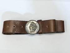Vintage 1877 Indian Head Penny Brass Belt & Buckle Leather Fits 35-41 Waist
