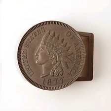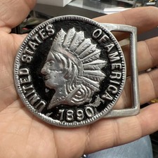 US Indian Head Penny 1877Coin Belt Buckle Novelty Vtg Indiana Metal Craft.SHY839