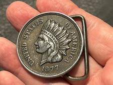 1877 Indian Head Penny VTG Indiana Metal Craft Belt Buckle