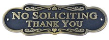 Brass Finish No Soliciting Thank You Sign 5 x 1.5 inches, # 8" Antique