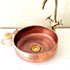 Hammered Copper Sink – Rustic Round Vessel Basin for Bathroom or Kitchen