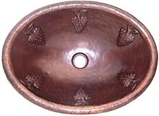 19" x 14" Oval Hand-Hammered Antique Grapes Bathroom Copper Sink