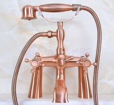 Antique Red Copper Deck Mount Clawfoot Bath Tub shower Filler Faucet Hand shower