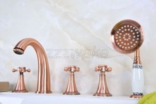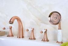 Antique Red Copper Deck Mounted 5 Holes Roman Bathtub Faucet Handshower Ztf234