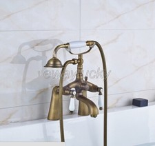 Antique Brass Deck Mounted Clawfoot Handshower Tub Faucet Mixer Tap Set san013