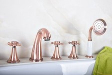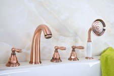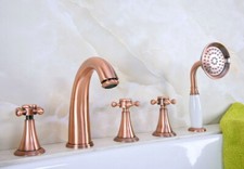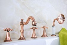 Antique Red Copper 5 Holes 3 Handles Roman Tub Bathtub Faucet Handshower Ztf235