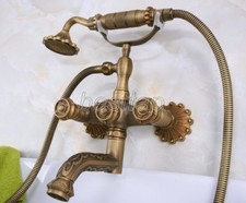 Antique Brass Carved Clawfoot Bath Tub Faucet with Handshower Wall Mount sna223