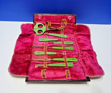 Antique Manicure Grooming Kit with Green Handles