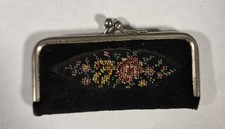 Antique Embroidered Velvet Sewing Etui Manicure Tool Coin Purse c1900