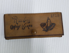 Antique Leather Souvenir Coney Island Grooming Case with Comb Mirror Nail File