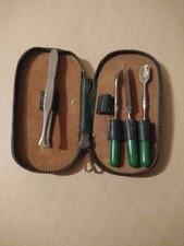 1900's vintage travel kit / Manicure Kit. Dark Green. Antique set History