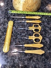 ANTIQUE LA CROSS SCHNEFEL BROS BAKELITE 7pc MANICURE SET CORN KNIFE FILE GERMANY