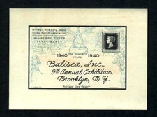 US# Mulready Penny Black 1840-1940 Show Label 9 th Annual Exhibition Brooklyn NY