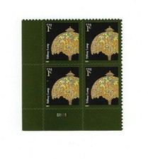 US American Design Tiffany Lamp 1c stamp Plate Block of 4 Scott #3749a