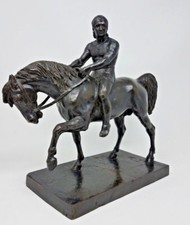 Antique Bronze Metal Statue Sculpture - Man on Horse Piece Signed REDUCED