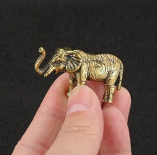 Thai Style Brass Elephant Figurine - Cute Tea Pet Decor Antique Finish