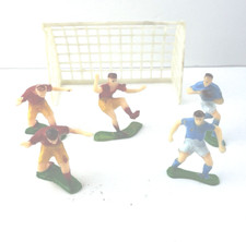 Vintage Soccer Player Figurines 5 Plastic Toys + Goal Net Cake Topper Decor