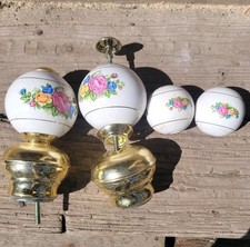 Vintage Porcelain & Brass Antique Floral Bed Post Handles Lot of 4 Antique Knobs