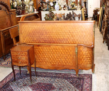 French Antique Louis XV Parquetry Rosewood Queen Size Bed & 2 Nightstand