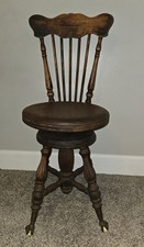 Antique Vintage Wooden Piano Stool Adjustable Seat Rare Claw Glass Ball Feet