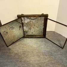 1876 Brevete French Antique Folding Trifold Mirror Mercury Glass.