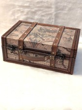 Vintage Old World Map Wooden Suitcase Trunk Box