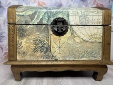 Vintage Mini Trunk/Chest, Old World Map & Tropical Plants Drawing, Wood