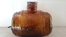 Vintage Amber Glass Keg Decanter Whiskey Barrel Grape Pattern Cork Pre-owned