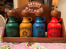 Bar Mini Saloon Bourbon Scotch Gin Whiskey Decanter Set Wood Hanging Table Displ