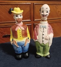 2 Vintage Western Whiskey Decanters, Cowboy Liquor Decanter & Saloon Barkeeper