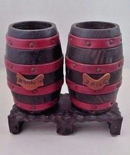 1960s Enesco Spain Whisky & Gin Pirate Wood Barrel Bottle Holder w/ Leather Trim