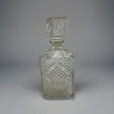 1960s Clear Glass Decanter Diamond Pattern,9 1/4"Mid-century, Deco, Vintage