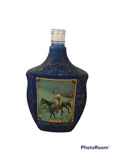 Blue Whiskey Bottle Decanter Remington Western Cowboy Art Bar ware Man Cave