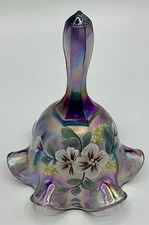 Fenton Artist Signed Amethyst Hand Painted 4” Glass Bell Purple